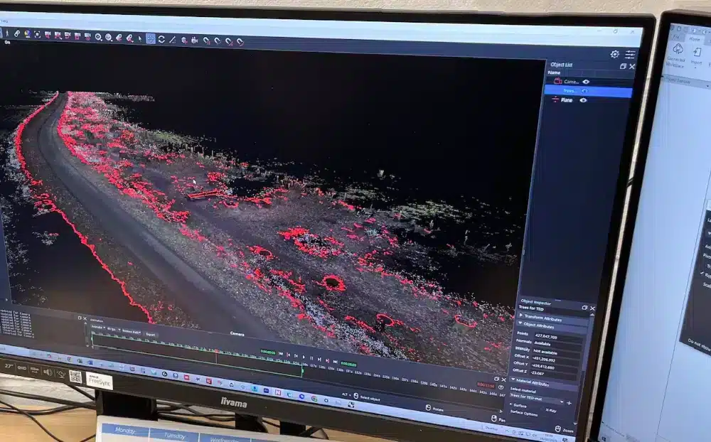 This survey would typically take about 4 to 5 days, complicated by tree specifications. But, we precisely scanned 12,000m2 area of woodland, in 35 minutes!