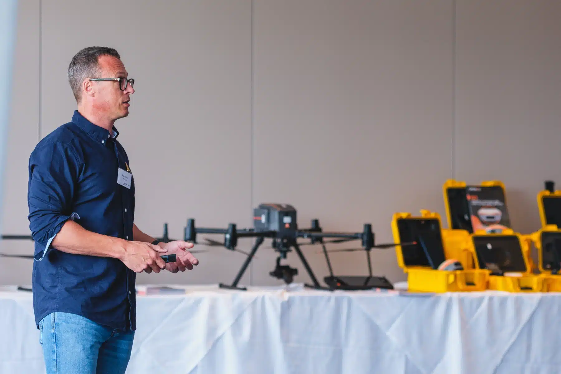 After lunch, the focus moved to aerial data capture. Our team introduced the X500 and AA10 drones with a mix of live outdoor flying and indoor presentations. These covered flight planning, data management and how they perform in real-world use.