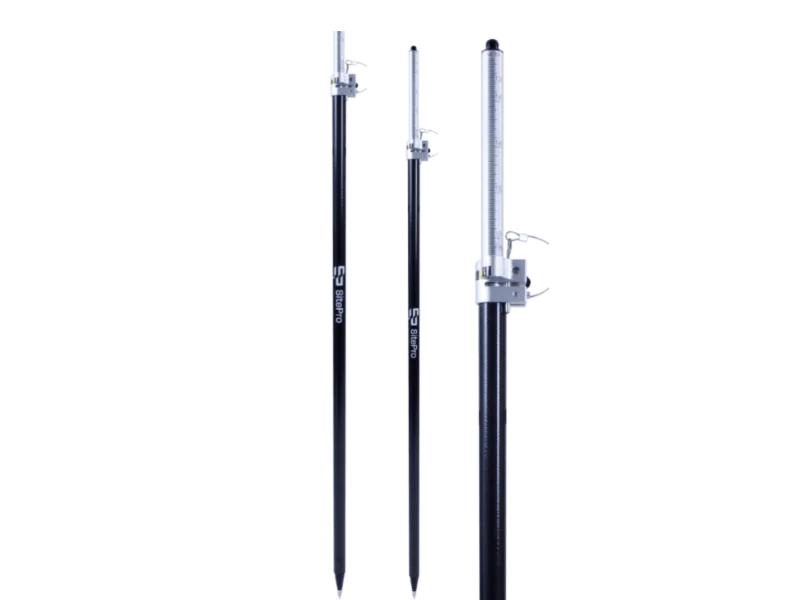 Carbon fibre telescoping pole is graduated to read direct for a 135 mm prism height (Trimble standard prism height)