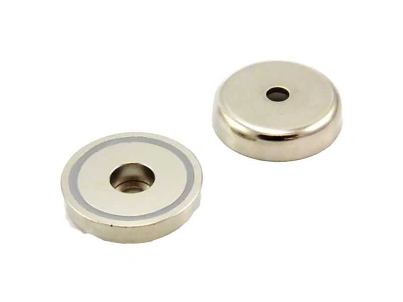 Large, strong Neodymium (N42) pot magnets with a counter-bored hole on the magnetic face.