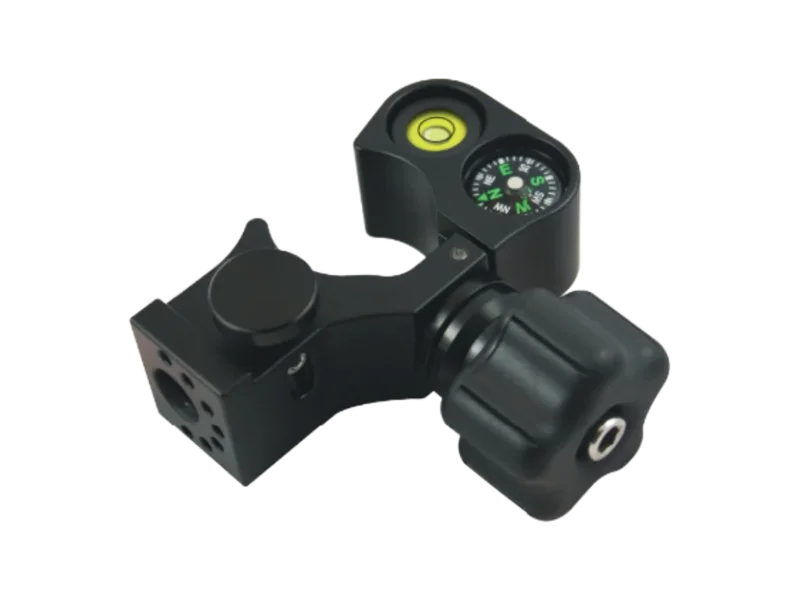 The SitePro quick release pole clamp features clamping system that easily secures to pole without crushing it. This anti-crush quick release design locks securely to pole when tightened. Compatible with quick-release cradles. Features built-in 20min vial and compass.
