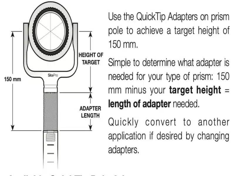 • Compatible with any of the poles with interchangeable design for GNSS robotics or total station surveysQuick conversions to another applications by changing adapters