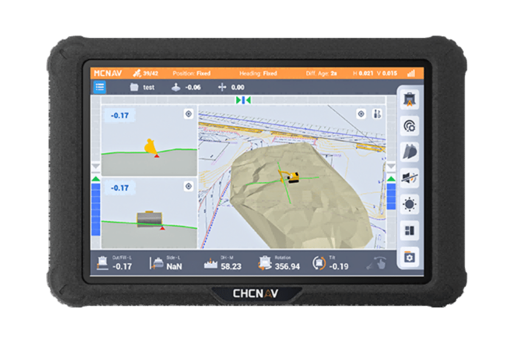 The MCNAV TX73 Basic Guidance System for Excavators combines advanced GNSS receivers with robust IMU sensors to accurately determine the bucket tip’s position. Precise control allows for direct digging to target surfaces, significantly reducing the need for traditional survey methods. As a result, the TX73 boosts productivity and cost efficiency, enabling projects to be completed faster and more economically.
