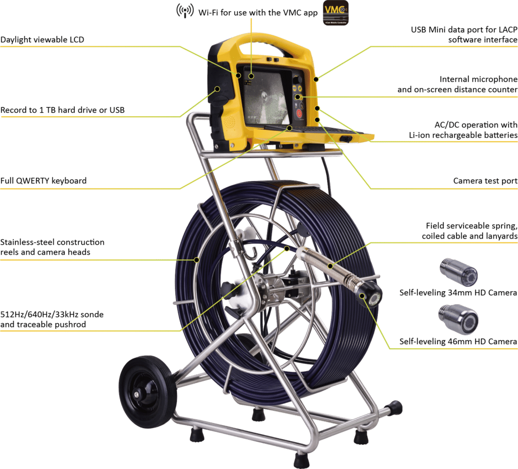 The vCam-6 HD inspection system from Vivax-Metrotech gives you the flexibility to cover a range of inspections including municipal collection systems, residential plumbing, indoor commercial lines, and lateral lines from three inches up to eight inches in diameter. Our camera systems use the latest technology packaged in a rugged, lightweight, compact profile made specifically for the harsh conditions related to sewer lateral inspections. All Vivax-Metrotech camera systems are backed up by a full one-year warranty, on-site training, and local support through our dealer network.